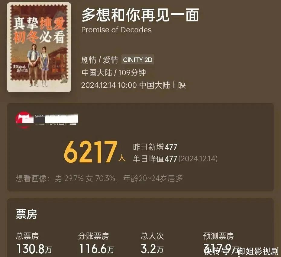 然而,虽然声势浩大,但观众似乎并不买账,该片上映第一天票房仅有130万,上映第二天单日实时票房排到了十名开外,预测最终总票房不到400万,可以说这点票房,连付演员片酬都不够,制片方亏惨了!